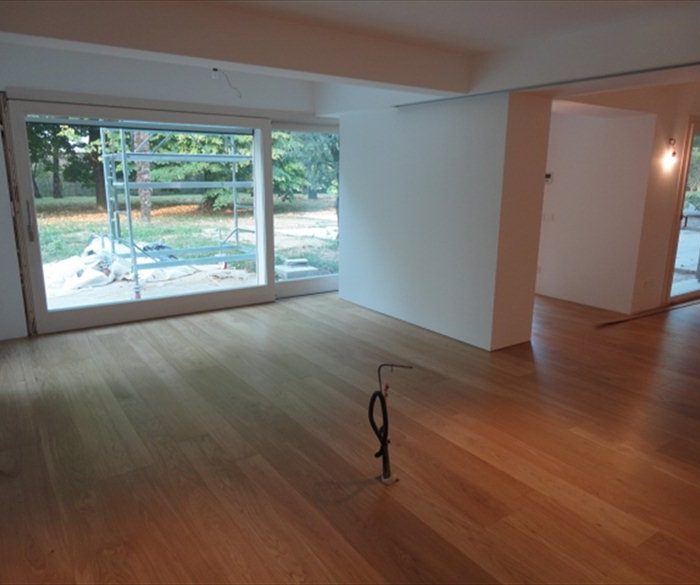 Intervento di riqualificazione e ristrutturazione di porzione ed edificio unifamiliare, con cambio della distribuzione interna. Intervento all’interno di un fabbricato di grandissime dimensioni che ha permesso di convertire un piano accessorio ad uso residenziale. Visto l’inserimento di tale edificio all’interno di un parco con la presenza di una grande quantità di essenze, sono state realizzate aperture con dimensioni importanti al fine di legare l’interno organicamente all’esterno.